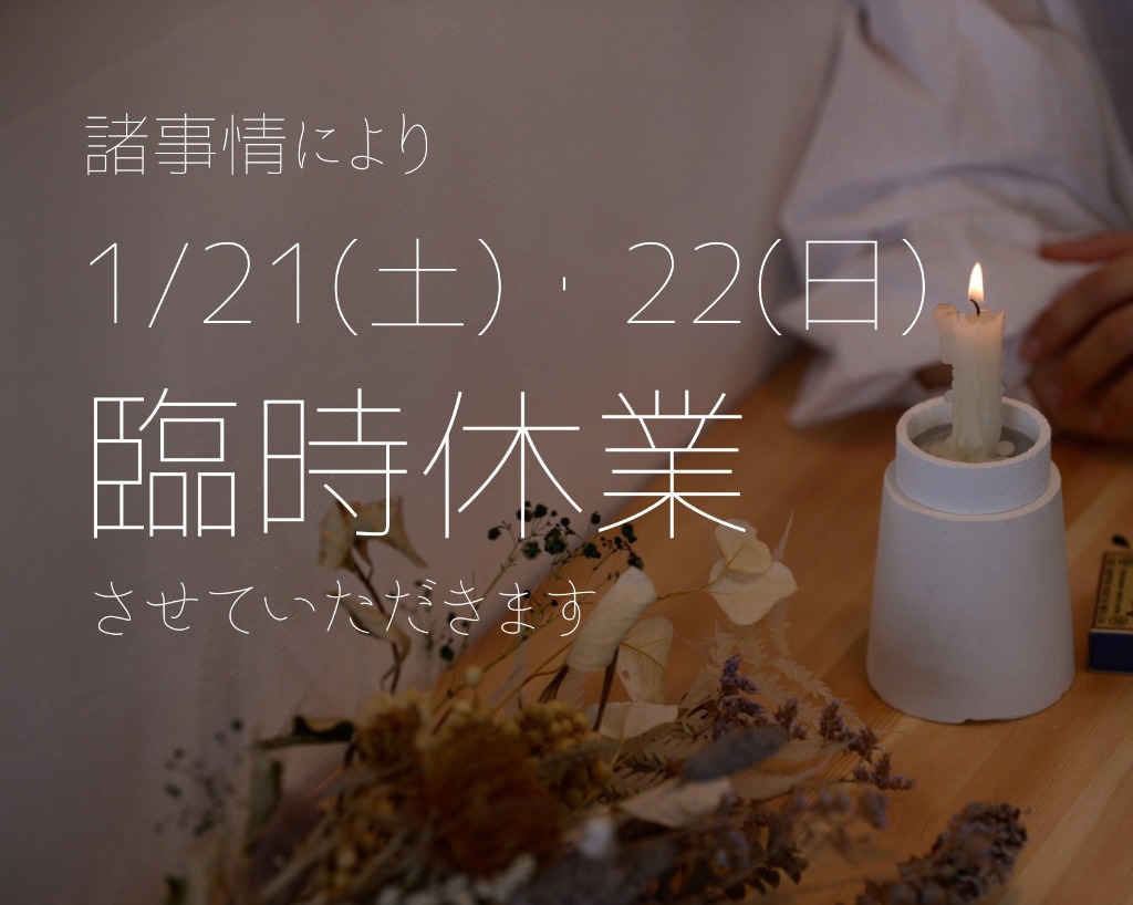 1/21(土)、22(日)と私事で臨時休業とさせて頂きます。